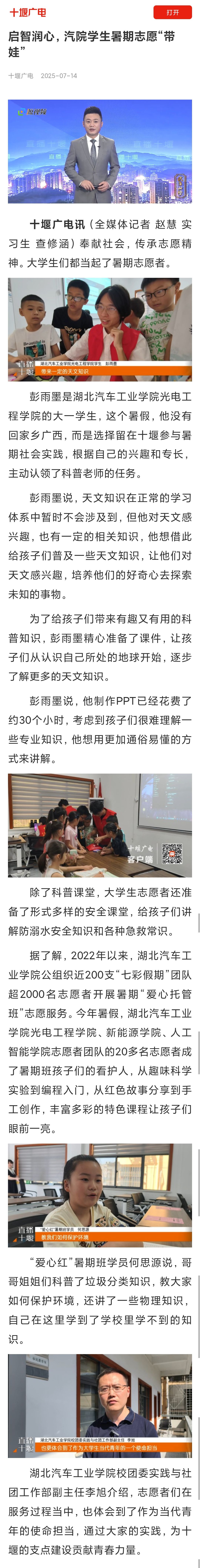 【十堰广电】启智润心,汽院学生暑期志愿“带娃”