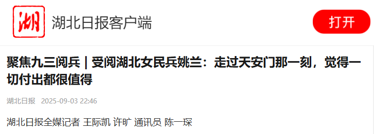【湖北日报】聚焦九三阅兵 | 受阅湖北女民兵姚兰:走过天安门那一刻,觉得一切付出都很值得